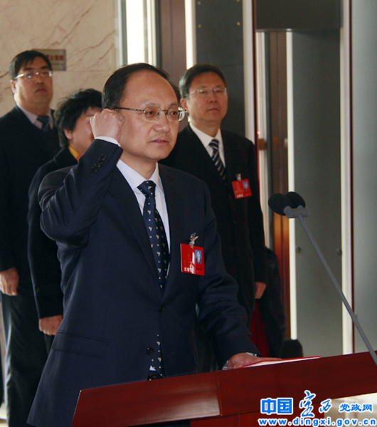 王钧向宪法宣誓。